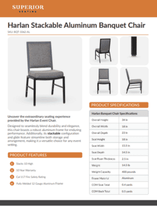 Cal 117 Fire Safety Rating Safety is non-negotiable. Designed to meet Cal 117 Fire Safety standards, these chairs offer a secure solution for spaces hosting diverse gatherings, from community centers to private celebrations.